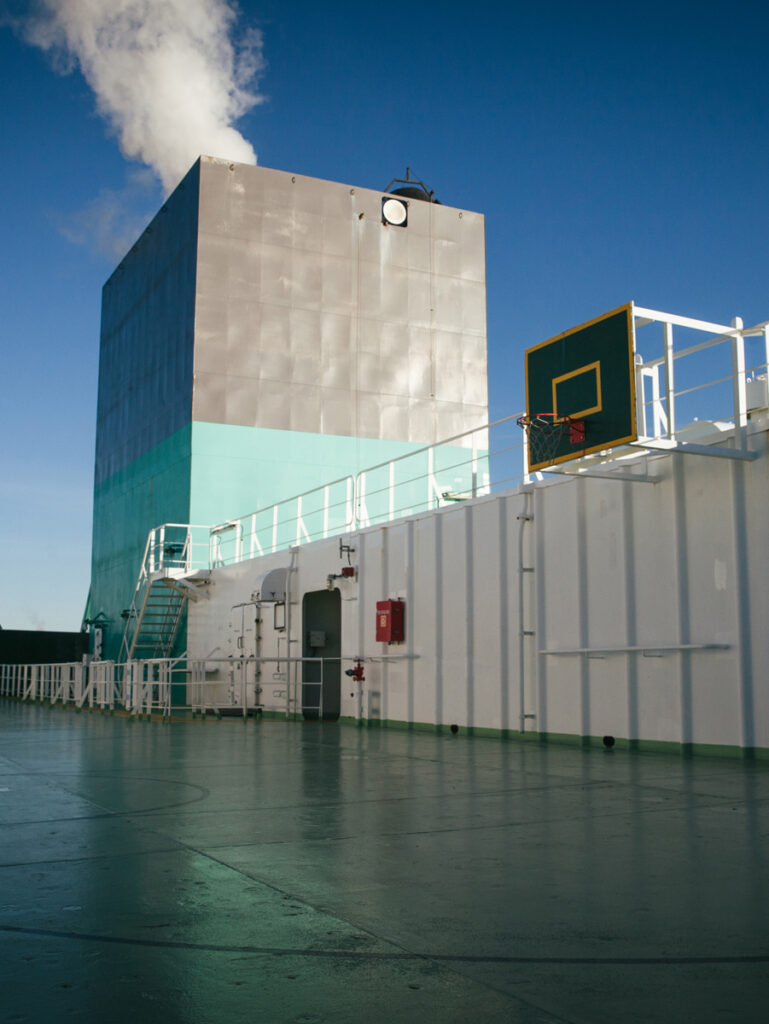 När vi slagit oss ner i sällskapsrummet några våningar upp berättar de att arbetspassen ofta löper från sex på morgonen till fem på eftermiddagen, så man brukar inte hinna med så mycket fritid ombord, mest blir det jobb, mat och sömn.