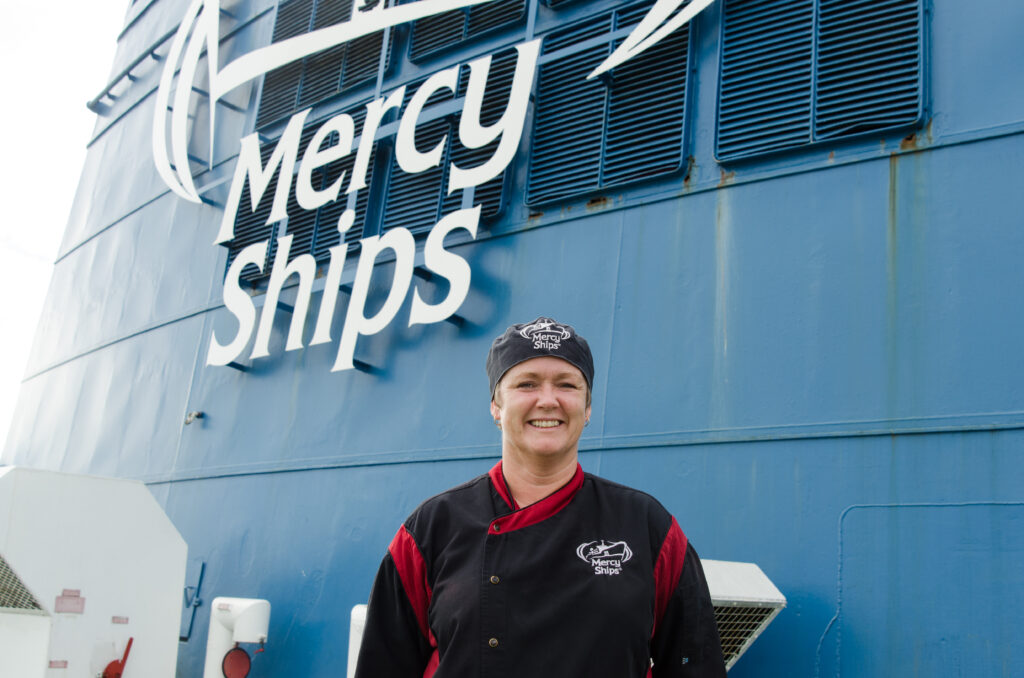 Maria Ekstrand under en tidigare tur som volontär i köket ombord på Africa Mercy. Foto: Mercy Ships